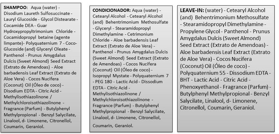 Composição: Shampoo Low Poo, Condicionador e Leave-in low/nopoo